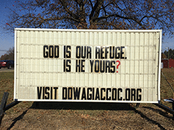 These are things all of us can do. We all need to grow, to expand our understandings, to be united in love and in service, to stop to praise God and thank Him for all we have. A disciple is simply a “Christ-like” person, doing all he or she can to practice what Jesus taught. — John Clayton Our sign by the street!
