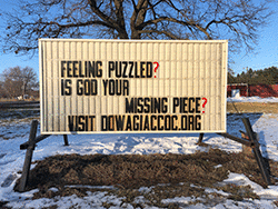 2. Romans 6:4-23 THE BACK PAGEPROUD OF USThis past Sunday we enjoyed having Glynn and Ann Langston with us. They were at Niles Sunday morning and with us Sunday evening. Glynn is an old friend of mine, and we have worked on a lot of projects together. We always talk when we get together because our ministries overlap. Our quarterly journal is read onto an audio master and duplicated onto CDs and cassettes which Glynn mails to around 100 blind or visually impaired people. In addition to that, he puts us in contact with atheists and skeptics that he runs into in his work. He spends his summers in Ireland where he works with Irish congregations, and also does work for the blind for the Irish government. All of this gives us a lot of opportunities to talk about our ministries, but also about the Lord's church as a whole. It is astounding to me that Glynn's work is not sponsored by a large Bible Belt congregation that has a lot of money and could expand his outreach in some incredible ways. Most of Glynn's support comes from congregations like us, small in size but large in spirit (to use his words). Glynn's wife Ann is an amazing person as well. She and Tracey have a lot in common. Ann has been involved in an outreach to people struggling with death and end of life situations. Tracey lost her mom last year and has recently been working for a funeral home. I asked Tracey to talk with Ann because of Tracey's expertise and sensitivity in this area. If you would be interested in this kind of ministry please see me. Glynn and I talked about congregations in this area and what we see happening in America to the church as a whole. Our affluent modern society has gotten so infatuated with materialism that it has influenced the church. We do not see many congregations growing or even holding their own, and we especially are concerned with the fact that congregations everywhere seem to be immersed in entertainment, but have no evangelistic activity that the congregational members can participate in. It is easy to play church. What I mean by that is that going to services and maybe even classes is easy and makes no demands on us. The fact that our group has a dozen programs that members here can participate in is unique. We need to be proud, not in an arrogant or self-righteous way, but proud to say that we serve Jesus and we do it every day in a multiplicity of ways. Thank God that he lets us do this, and that we can benefit by being a part of his work. — John Clayton Our sign by the street! Sign saying from www.sayingsforchurchsigns.com Scripture links/references are from BibleGateway.com. Unhighlighted scriptures can be looked up at their website. www.dowagiaccoc.org |